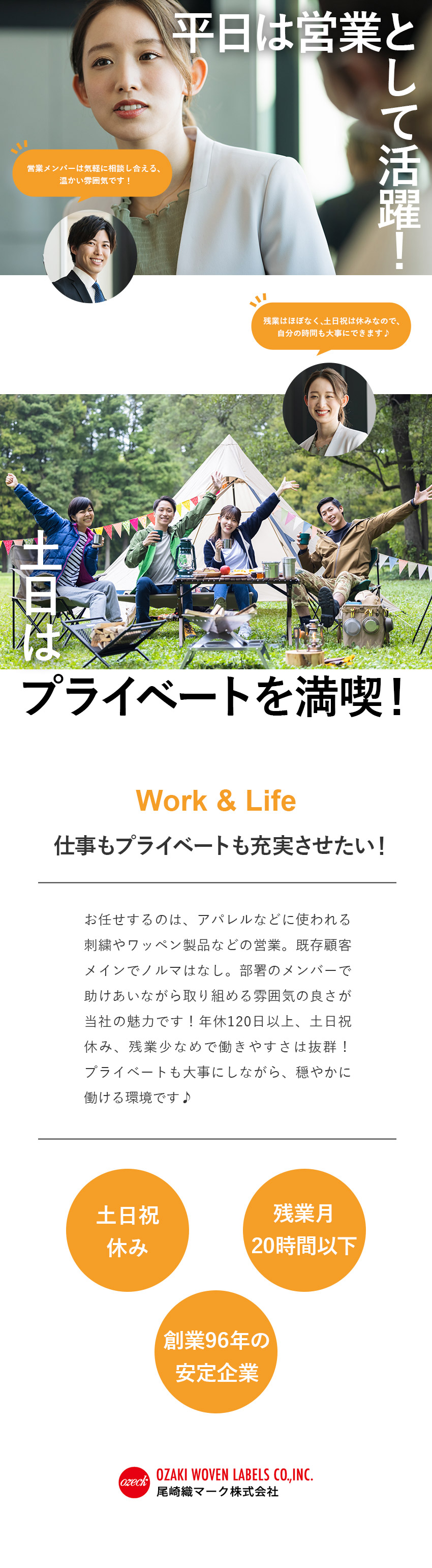 アパレルルート営業/未経験歓迎/年120休/転勤無/安定企業