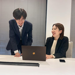 有資格者の先輩との同行を通じてノウハウを学び、 入社半年後に企業担当としてひとり立ち。 チャレンジングな風土は面白くやりがいを感じています。 将来はグローバル企業の経営支援にも携わってみたいですね。
