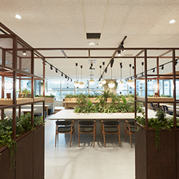 休憩スペースや喫煙ブースなど、昼休憩だけではなくちょっとしたリフレッシュ休憩にも使える設備から、商談時に活用できるMTGスペースや商談ボックスも併設しています。