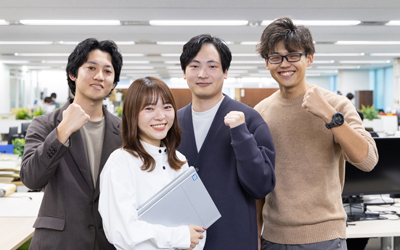 挑戦を歓迎する社風のもと、社員一人ひとりが意見やアイデアを発信し、切磋琢磨して業務に取り組んでいます。