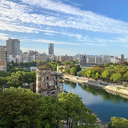 オフィス8階の窓からは、原爆ドームや平和記念公園を望むことができ、広島を訪れる数多くの観光客の姿や季節の移り変わりを感じることができます。