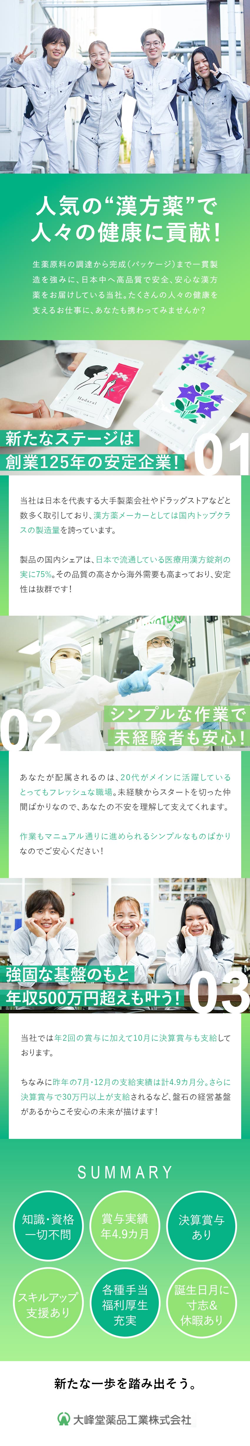 漢方薬の製造スタッフ/未経験歓迎/福利厚生充実/賞与年3回