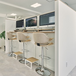 個々のワークスペースがありつつ、カウンターや共有スペースなど自由に使えるため、気持ちを切り替えて業務をすることができます。