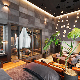 店内は南国のリゾートホテルをイメージしたお洒落な空間。細部のインテリアにもこだわっています。