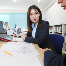 バリバリ活躍している格好いい女性先輩に憧れて入社しました。入社1年も経たず責任ある仕事を任せてもらえるようになり入社3年目で主任に。もっと勉強したい気持ちが強く、施工現場をできるだけ見に行っています!
