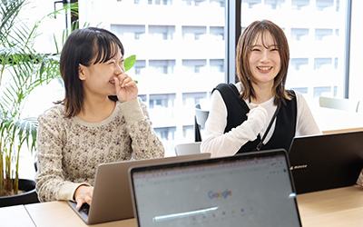 部署の雰囲気はとても和やかで、コミュニケーションがとりやすいのが魅力。仕事の内容も決まり切ったものではなく、自分のアイデアを活かせる自由度の高さが働きがいに直結しているのだとか。記事のライティングにとどまらず、広告制作やバナー広告制作など幅広く挑戦できる環境です。