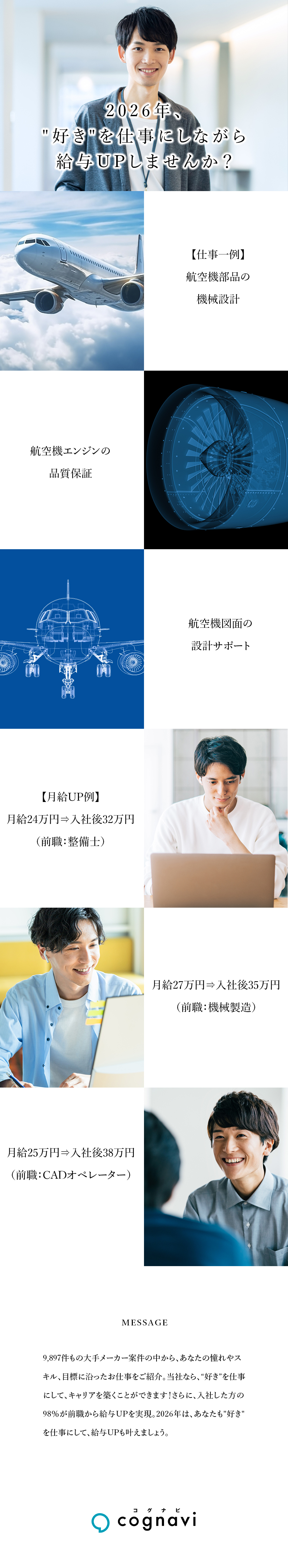 【今までのご経験を活かせるお仕事をご紹介】設計開発/生産技術など、航空機に関わる業務をお任せします