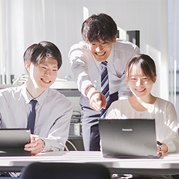 「プログラミング言語って何?」というレベルの未経験者も、数多くエンジニアへと育成してきた当社なら大丈夫。現に社員の半数以上が文系出身者です。スキルも経験も自信がない方も、着実に成長できる環境をご用意しています。