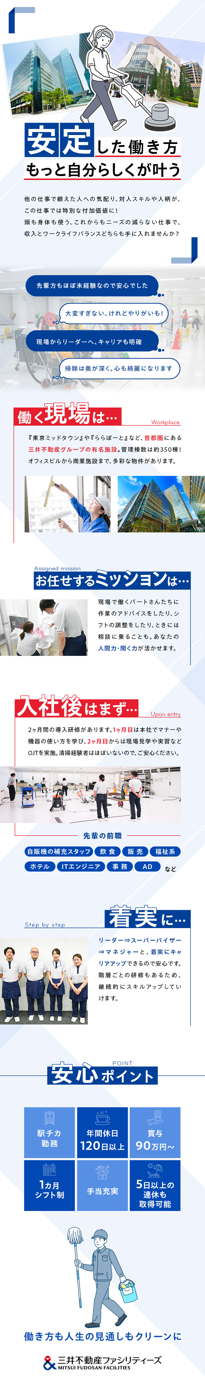 【未経験歓迎】ビルの清掃スタッフ◆三井不動産G◆夜勤あり・年休120日◆賞与5か月◆研修制度充実◆