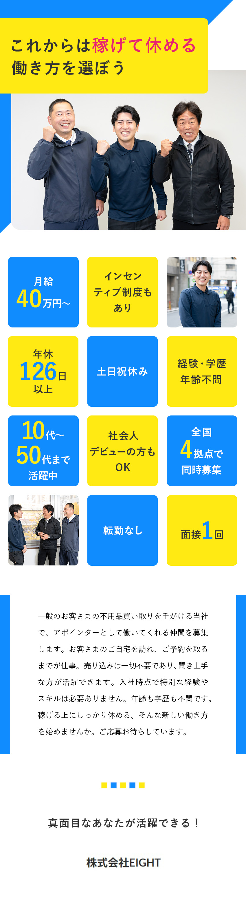 アポインター/月給40万円~/年休126日以上/未経験歓迎