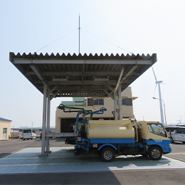 油槽所からタンクローリーで漁港に運び、給油作業を行います。
