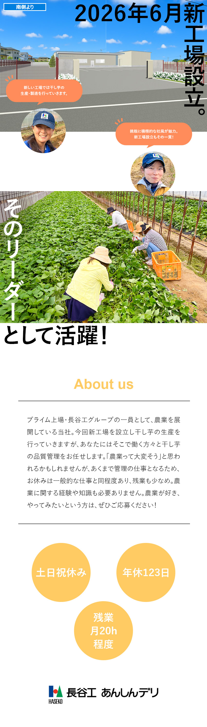 新工場のリーダー(人員・品質管理)/年休123日/転勤なし