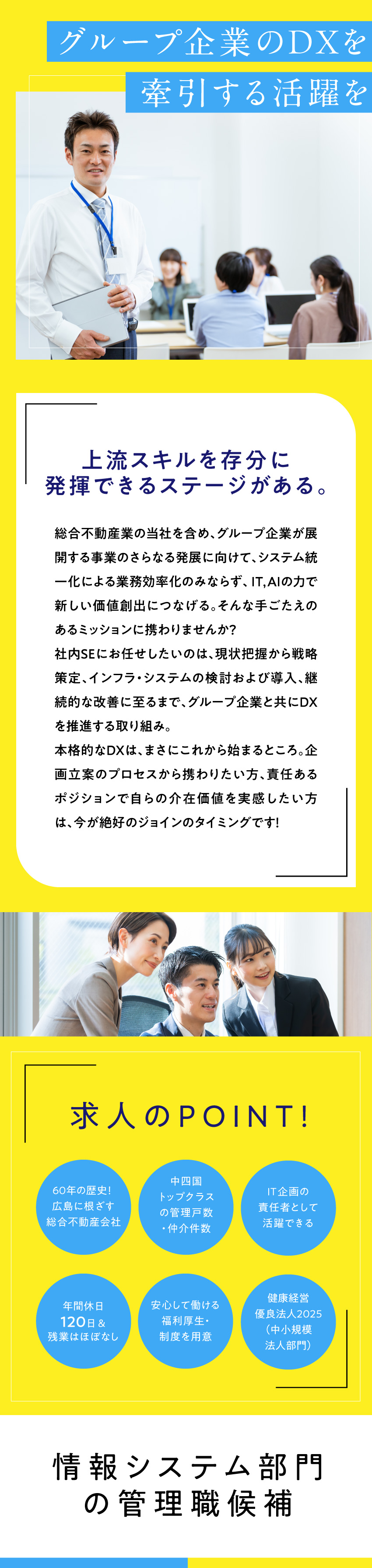 社内SE(管理職候補)/グループ企業のDX推進/残業ほぼなし