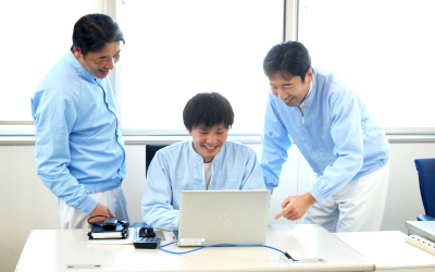 職場は落ち着いた雰囲気で、それぞれが仕事に集中。困った事やわからない事があれば相談し、助け合いながら働いています。これからも日々の作業が円滑に進むよう、無駄の無い働きやすい環境を目指します。