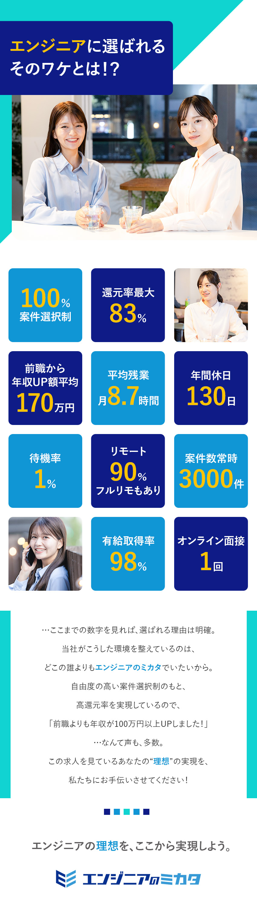 「エンジニアのミカタに中途入社して、年収が大幅に上がった!」という声が多数