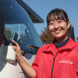 あるとき、コープの配送をしていた担当者の方を街中で見かけて、元気よく挨拶されている姿を見て楽しそうな仕事だなと思い、応募しました」