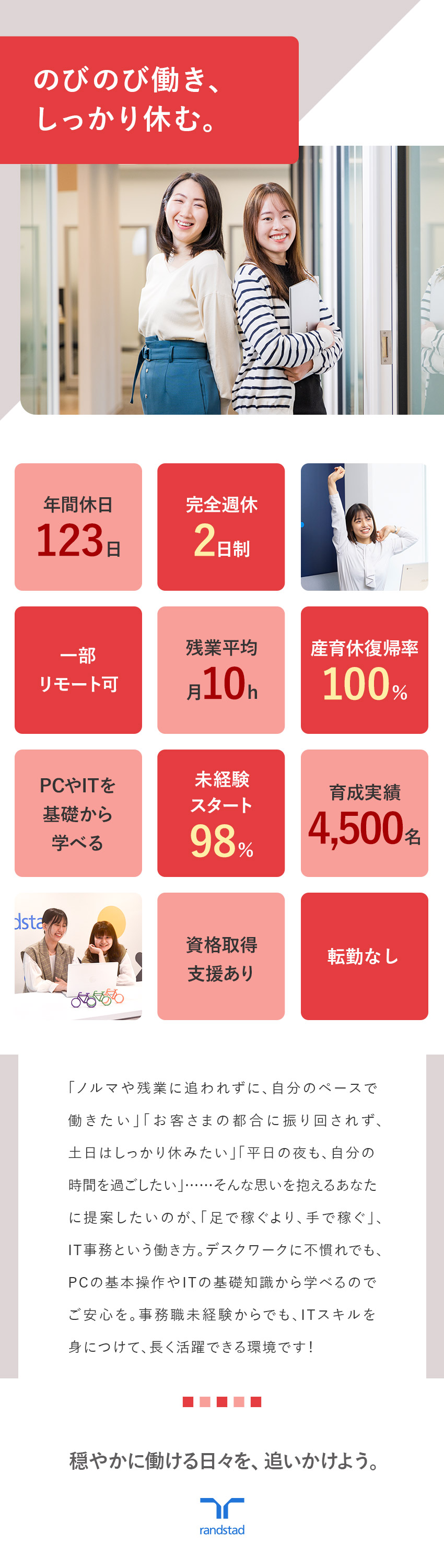 スキルが身に付くIT事務/研修充実/未経験歓迎/完全週休2日