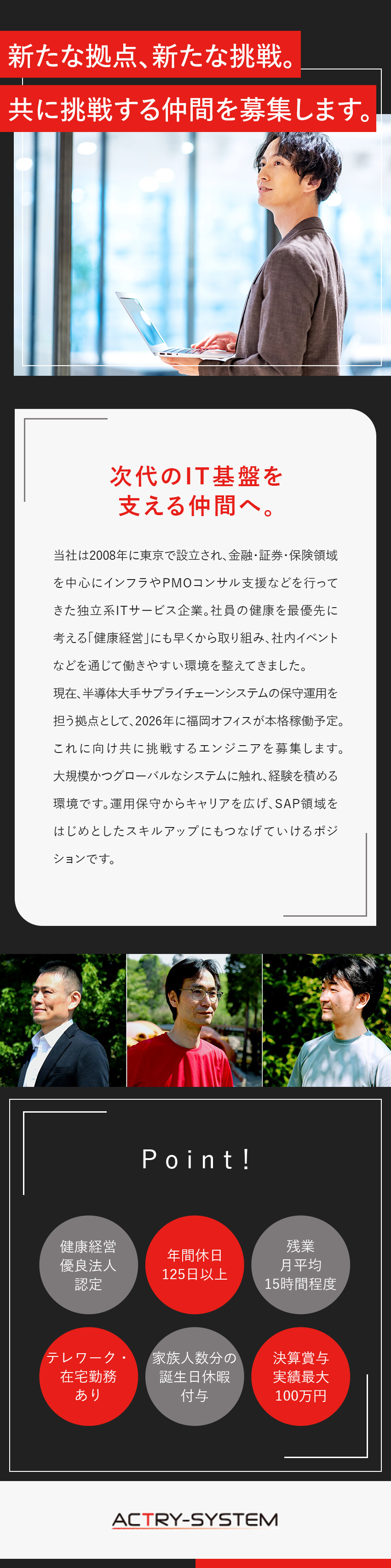 ITエンジニア/健康経営優良法人認定企業/新拠点OPメンバー