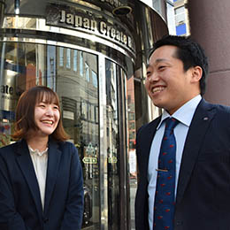 いろんな人と関わる仕事に挑戦したいと考え、当社を選びました。日々出会いがあり刺激的です。同時に、同僚や先輩との絆が深まっていくのを楽しんでいます。