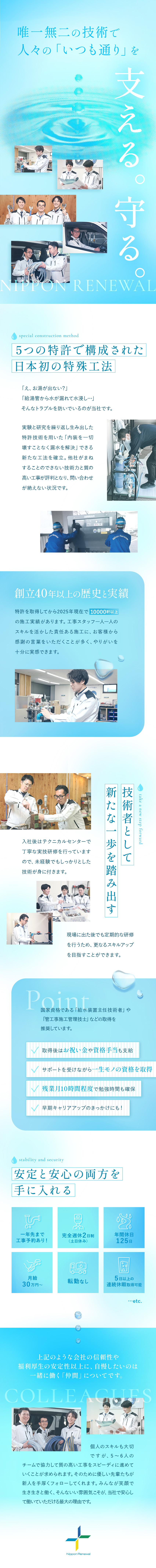 管工事スタッフ/未経験歓迎/月給30万円~/土日祝休/残業少