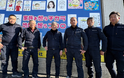 社屋外観。子どもたちの絵が地域の皆さまを笑顔にしています。