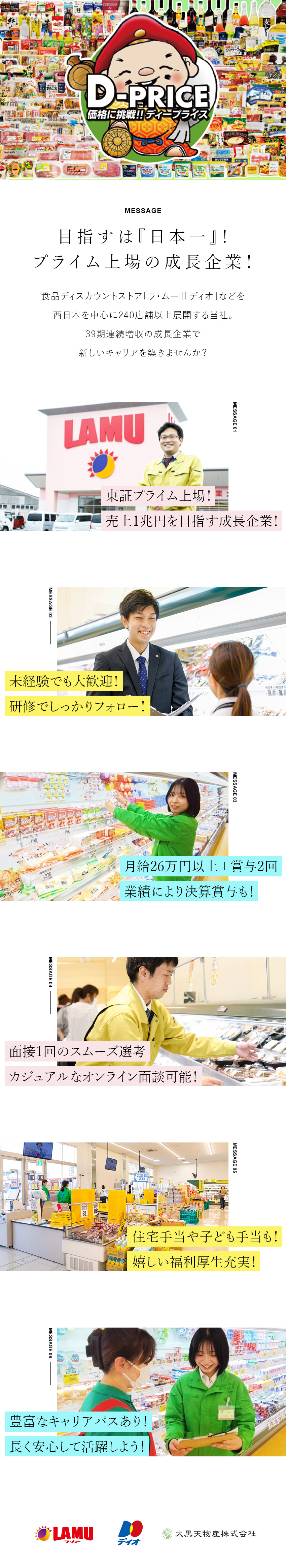 大黒天物産株式会社(ディスカウントストア「ラ・ムー」「ディオ」)【プライム市場】