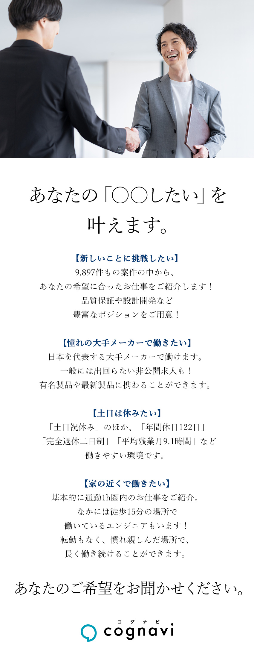 NEWものづくりエンジニア(総合職)/夢見た生活を実現/転勤なし
