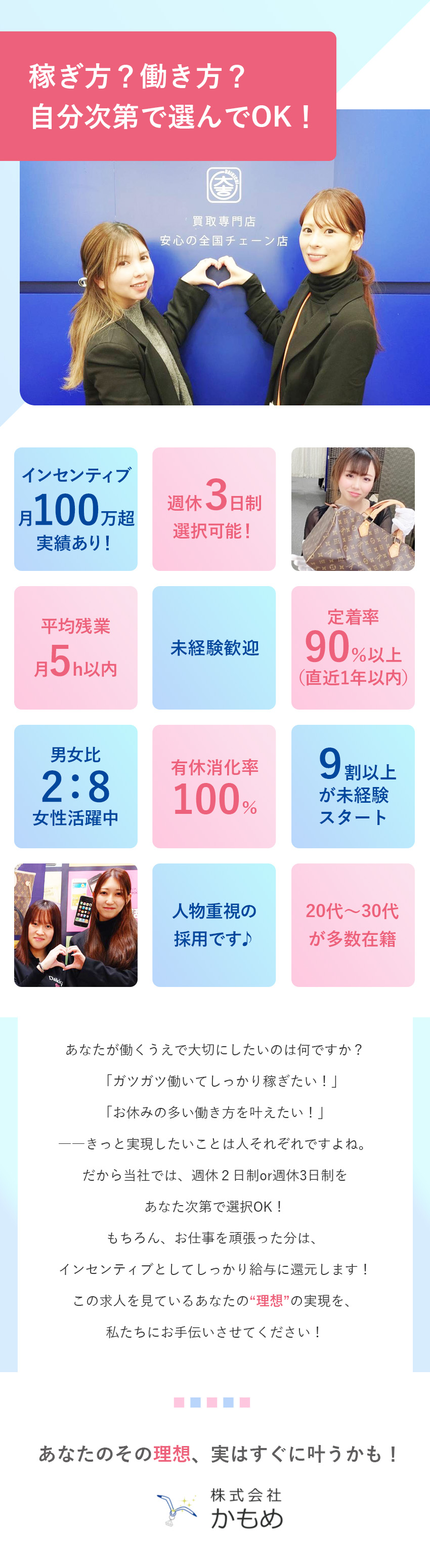 買取スタッフ/未経験歓迎/インセンあり/週休3日制も選択OK