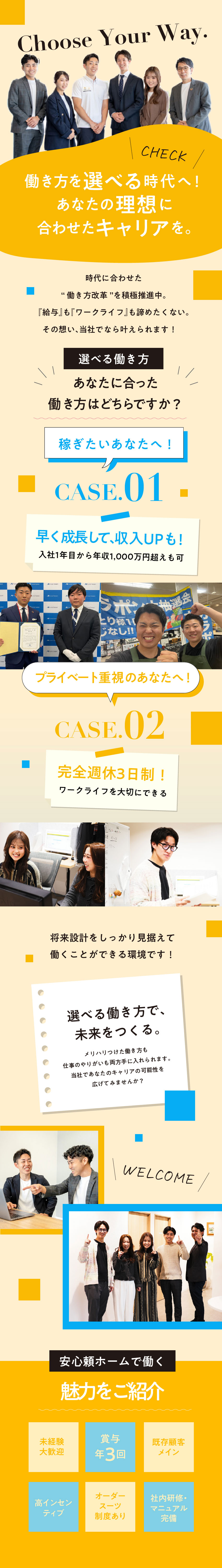 選べる働き方/国内メーカー住宅設備営業/賞与年3回
