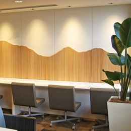 阿蘇山モチーフ壁面パネル空港ラウンジ。年間約1500件を手掛け、施工実績は九州トップクラスです。