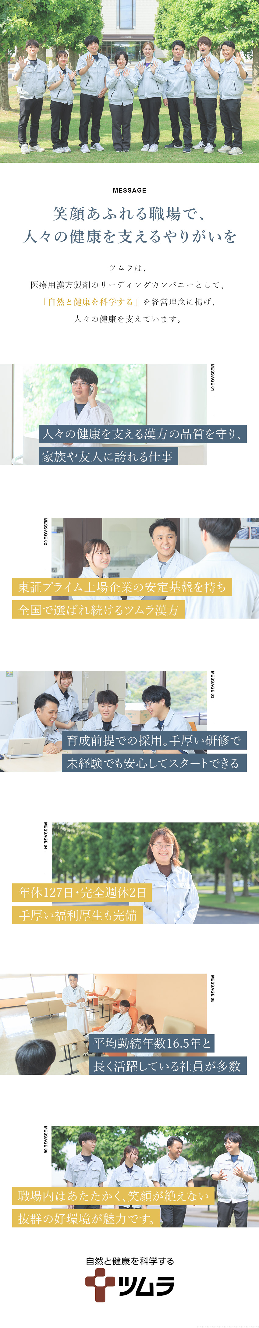 漢方製剤の製造/未経験歓迎/年休127日/残業月8.5h