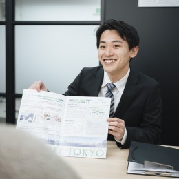 社会人として働くのがはじめて、という方でも挑戦できるのが同社の魅力のひとつ。実践のなかで先輩たちから学び、無事成約に結び付いたときには成長実感と大きな達成感を得られます。