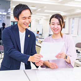 研修では、税金などの知識面をはじめ、情報収集の仕方やお客さまからどんなことを聞かれるのかなど、ロープレを交えて指導します。そうして営業社員がはじめて受注できたとき、自分のことのように嬉しく思います!