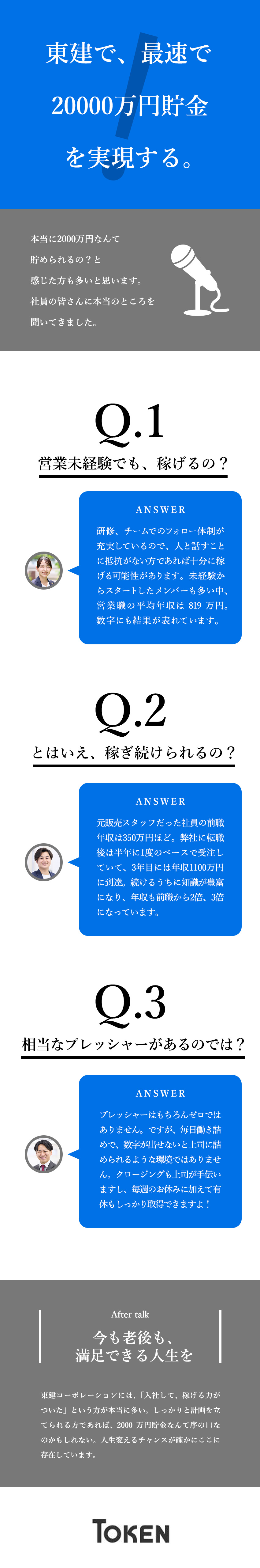 「前職は労働時間も長く、休みが少ない。年収もそこまで高くなく、昇進もなかなかしづらい。30代半ばになり、マイホーム・家庭を持つ中でさまざまな面で不安を感じることが多くなりました。転職活動中に東建と出会い、平均年収も高く休日も多い、家から近い支店もあるという情報に魅力を感じました。