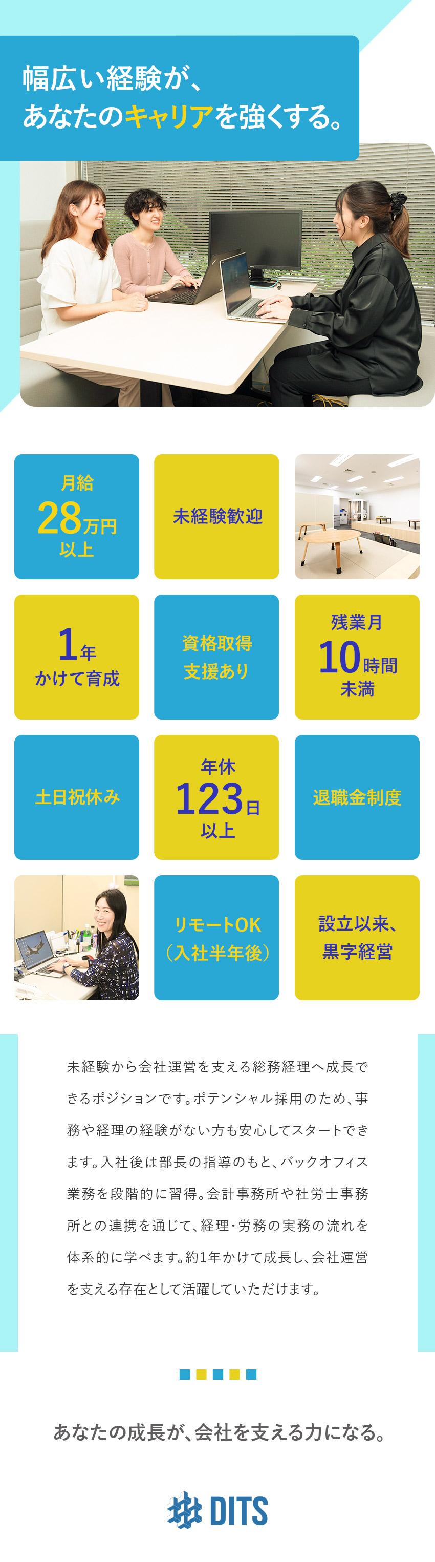 総務経理/未経験歓迎/月給28万円~/残業月10h/土日祝休