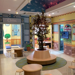 「職業体験プログラム」は警察官・消防士・医師など20種類以上の職業を本格的な衣装や設備で体験できる独自の取り組みで、専用ブースで社会体験と実践的な英語学習を同時に行える内容です。