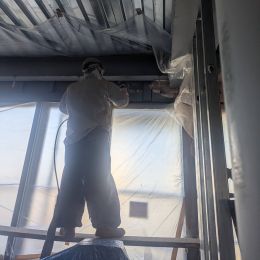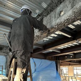 耐火被覆という火災による建物の倒壊を防ぐ工事や、ウレタン吹付による断熱施工で、安全かつ快適な空間をつくる工事などをおこなっています。