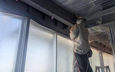 火災による鉄骨の変形を防ぎ、建物の倒壊を防ぐ工事です。