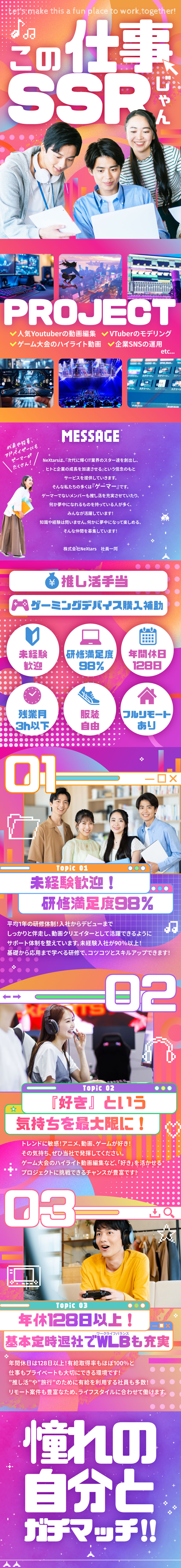 動画・VTuber事業のニーズ拡大に伴い、動画クリエイターを募集します!NeXtarsは、あなたの『好き』を仕事にできる場所。充実の研修とサポート体制で、未経験から活躍できます!