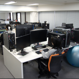 【快適な作業空間】広々とした作業デスク&大きなモニターで快適!バランスボールをイスにする先輩も!