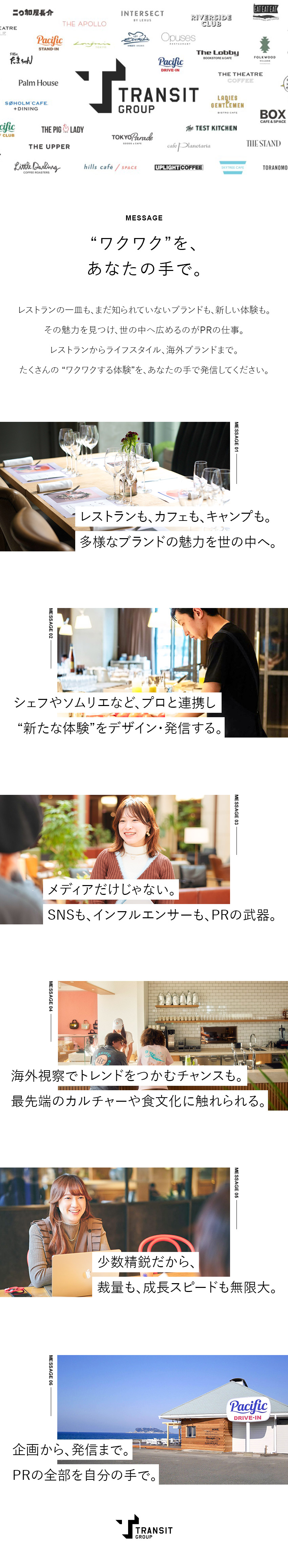 トランジットは小さなカフェからスタートし、現在は全国約150店舗を運営。飲食にとどまらず、ケータリング・イベント、キャンプ場など多彩な事業も手がけています。