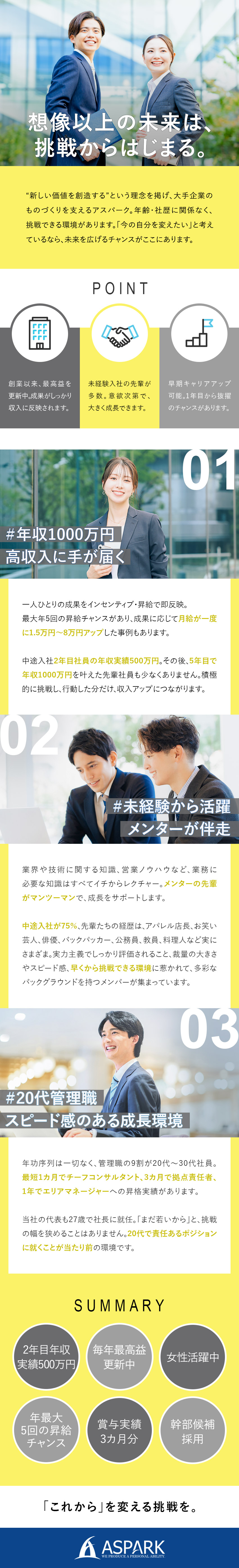 人柄・意欲重視の採用です。実現したいことがある方は、ぜひアスパークという環境を利用してください!