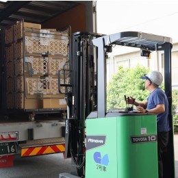 ④出荷作業:誤出荷がないよう確認し、ドライバーへ商品を引き渡し。