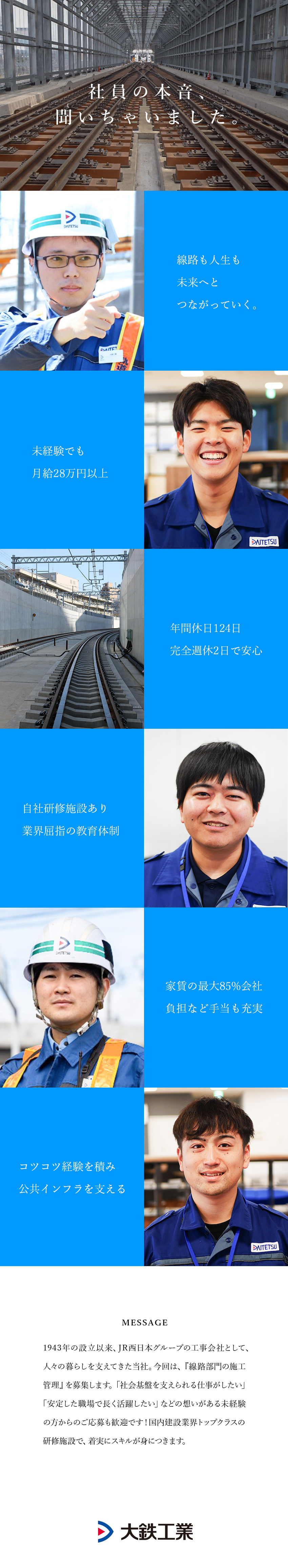 線路工事の施工管理/未経験歓迎/月給28万円~/年休124日