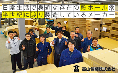 「通販で買った商品が届く時」「引越しをする際に荷物をまとめる時」など私たちの生活にとても身近で便利な存在の「段ボール」。高山包装株式会社はそんな段ボールを製造している会社です。半世紀以上に渡り業界をリードし、とくに関東エリアで高いシェアを誇ります。