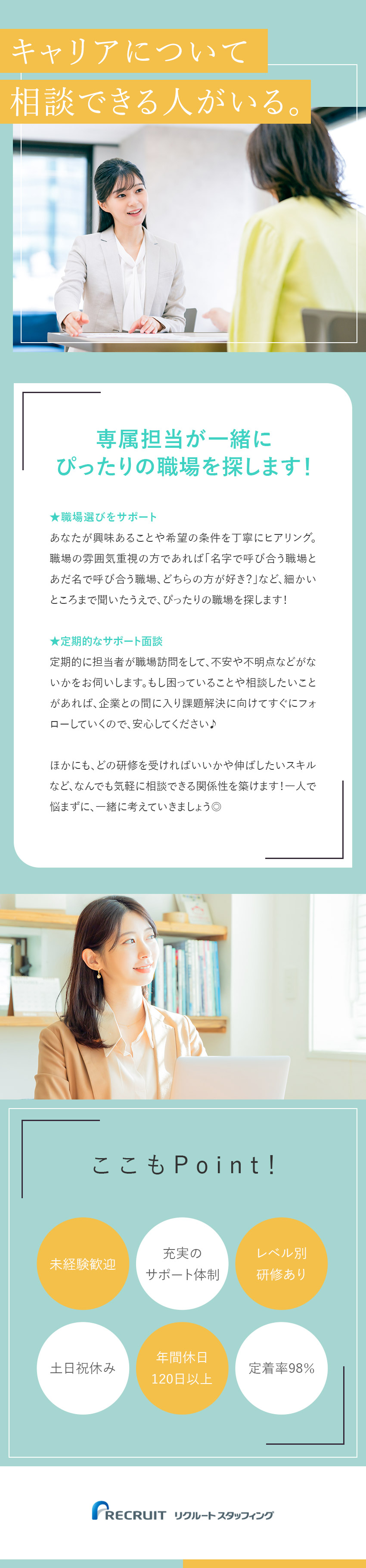 NEW営業事務・一般事務(若手活躍中/年休120日~/土日祝休)