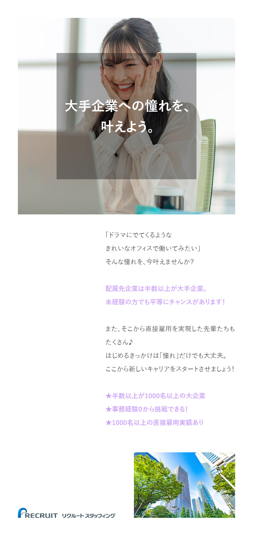 NEW大手企業の事務職/リクルートグループ/土日祝休/原則定時退社