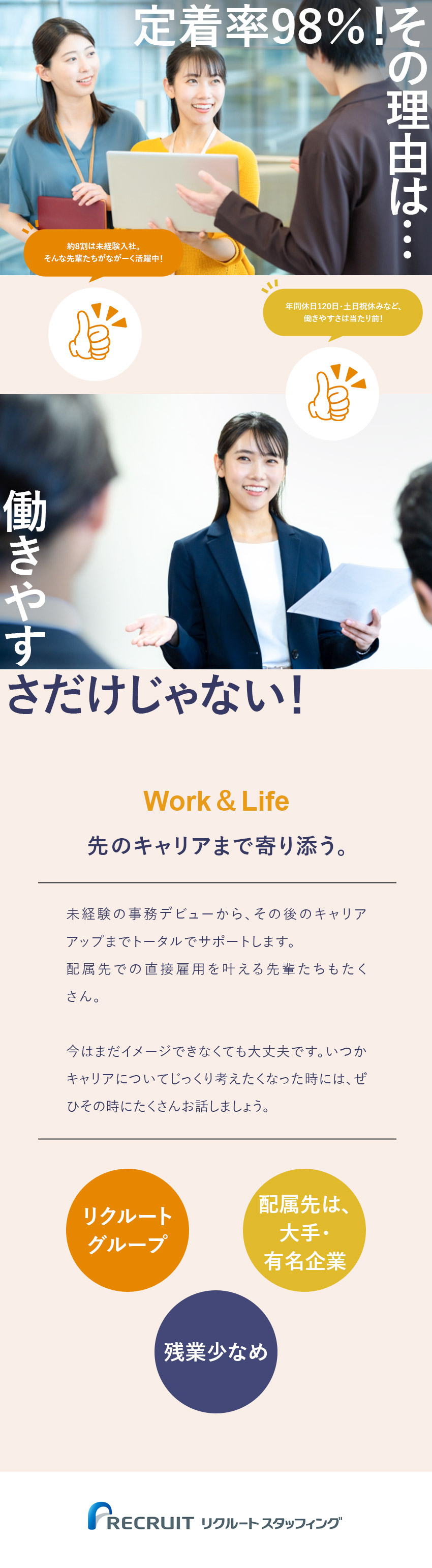 NEW締切間近未経験から事務職へ/リクルートグループ/配属先は大手企業