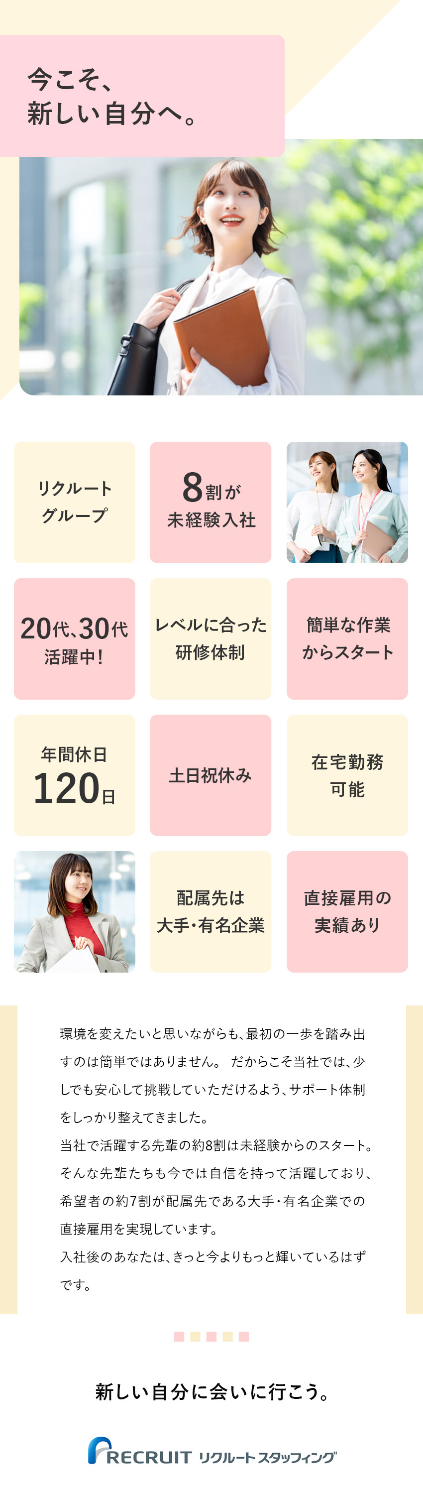 NEW締切間近未経験から事務職へ/リクルートグループ/配属先は大手企業