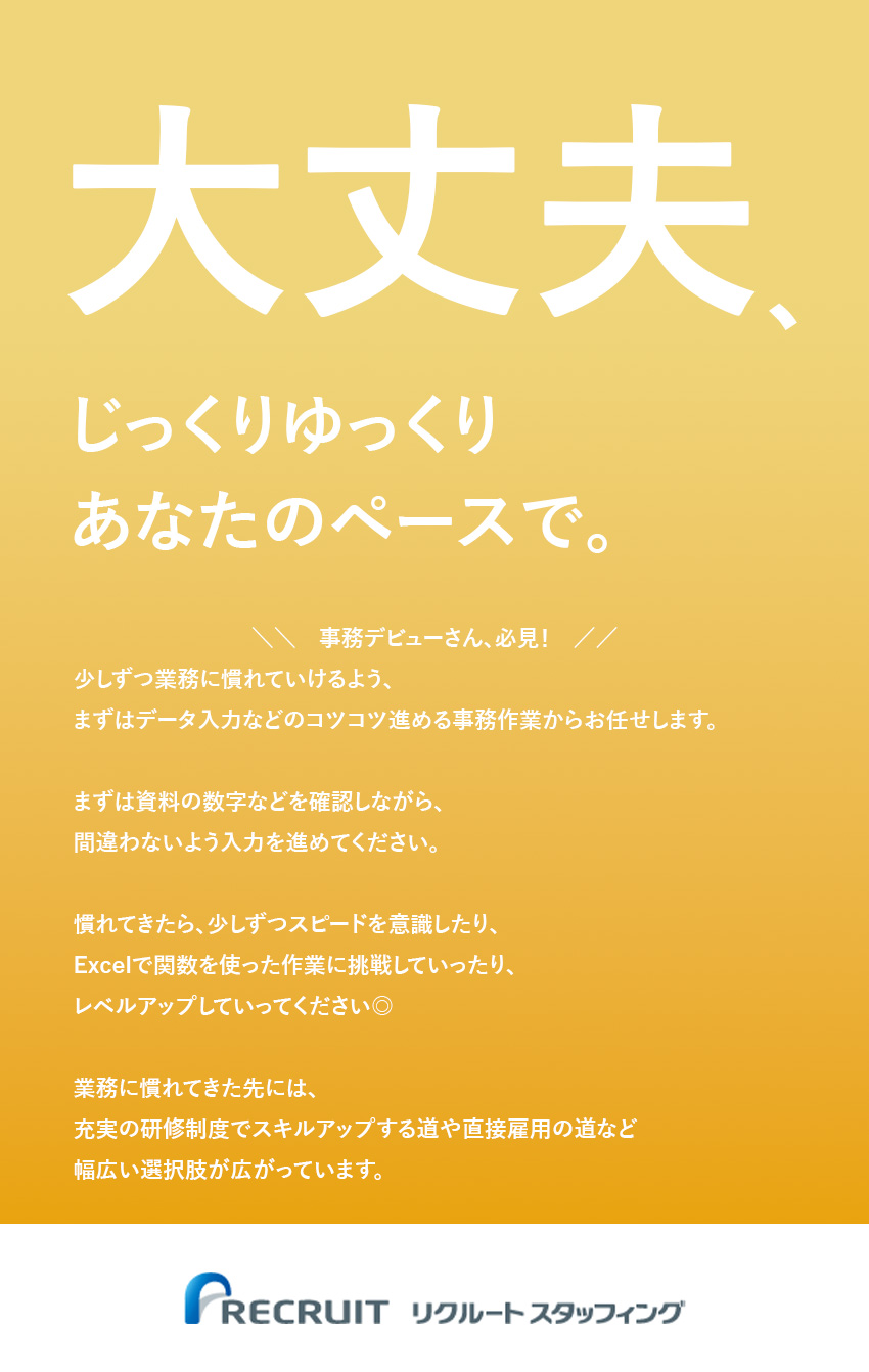 【学歴・経験不問★未経験・第二新卒歓迎】コツコツ事務スキルを身につけたい方歓迎!